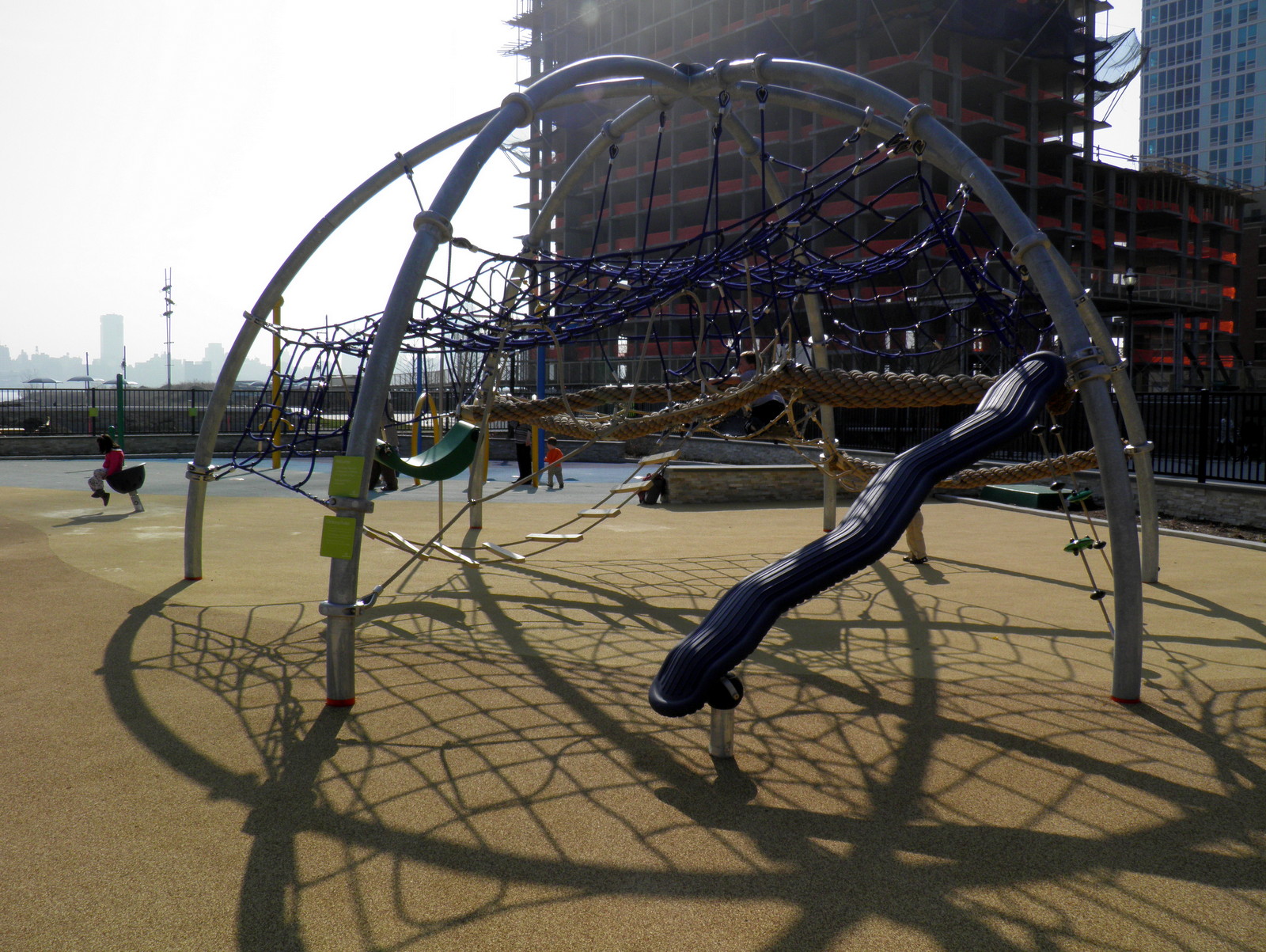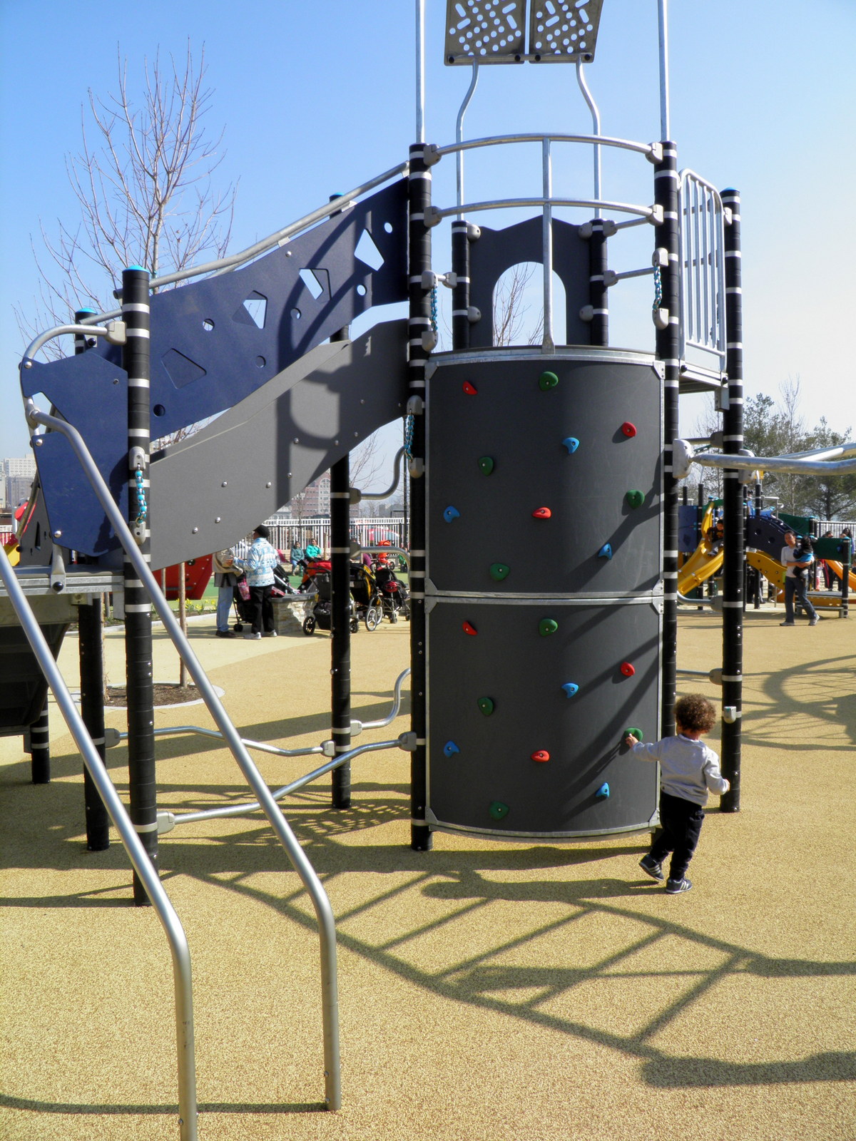 The playground is brand new and perfect for all ages, and the biggest plus is that it’s clean, no empty bags and bottles anywhere to be seen. The biggest pain though is parking – it is virtually nonexistent. Although you can park by the Aquablu towers, the parking is metered ($1.50) and limited to a maximum of one lousy hour. What is one hour when your little peanut is having so much fun… You might get lucky and find an empty non-metered spot a little further, but the time limit is just a slight improvement – 2 hours max. Alternatively, you can use Light Rail and get off at Pavonia-Newport, it’s a quick 5-minute walk to the playground. Or maybe you live close enough to walk from your house.