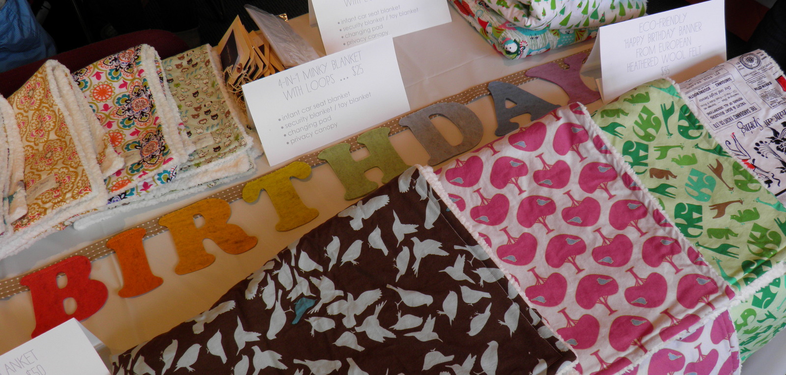 For the past month I have been caught up in the middle of sewing madness. Last week I drove 4 hours north to visit my friend Colleen (AKA the fabulous Saratoga Mama) and attended Saratoga Baby & Toddler Expo, which was my first expo ever. I had no idea what to expect. Let me tell you, there is a ton of pregnant women in Saratoga Springs and 95% of them are due in June… interesting. They were all very nice and chatty so the 4 hours flew by super fast. I was so glad to be there, all the local vendors were really awesome and the products were amazing, mostly handmade & eco-friendly. I couldn’t resist and bought a set of handmade fabric snack bags from Rosebud Johnnies and some cute handmade hair accessories for my friends’ daughters from Foxy Baby Design. Obviously, I couldn’t compete with their professional setup but I managed to display all of the 29 items I brought with me (it kept getting unorganized because people were examining them which didn’t go along my neurotic nature but I just had to deal with that internally and kept smiling).