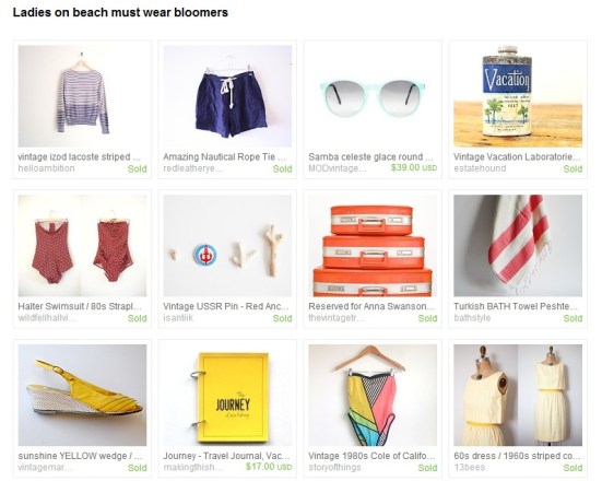 Oh, and did I mention they are so hot they made it to the front page on Etsy (it’s kind of a big deal to Etsians). Check out the featured page below (treasury name: Ladies on beach must wear bloomers).