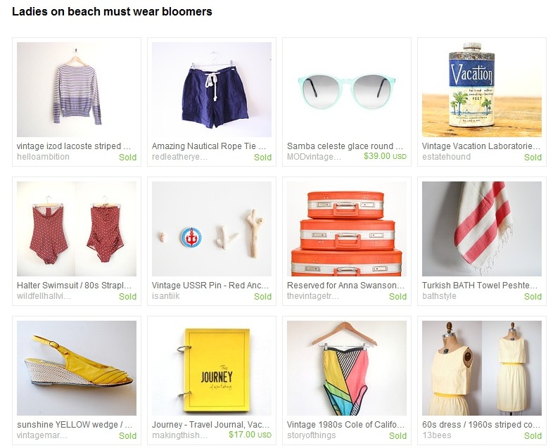 Oh, and did I mention they are so hot they made it to the front page on Etsy (it’s kind of a big deal to Etsians). Check out the featured page below (treasury name: Ladies on beach must wear bloomers).